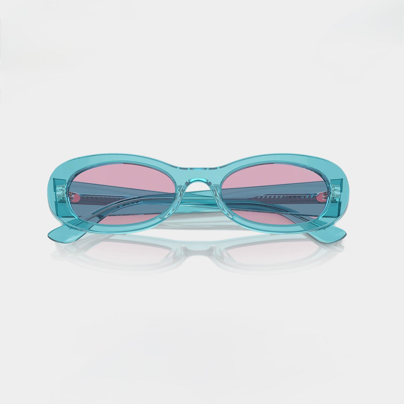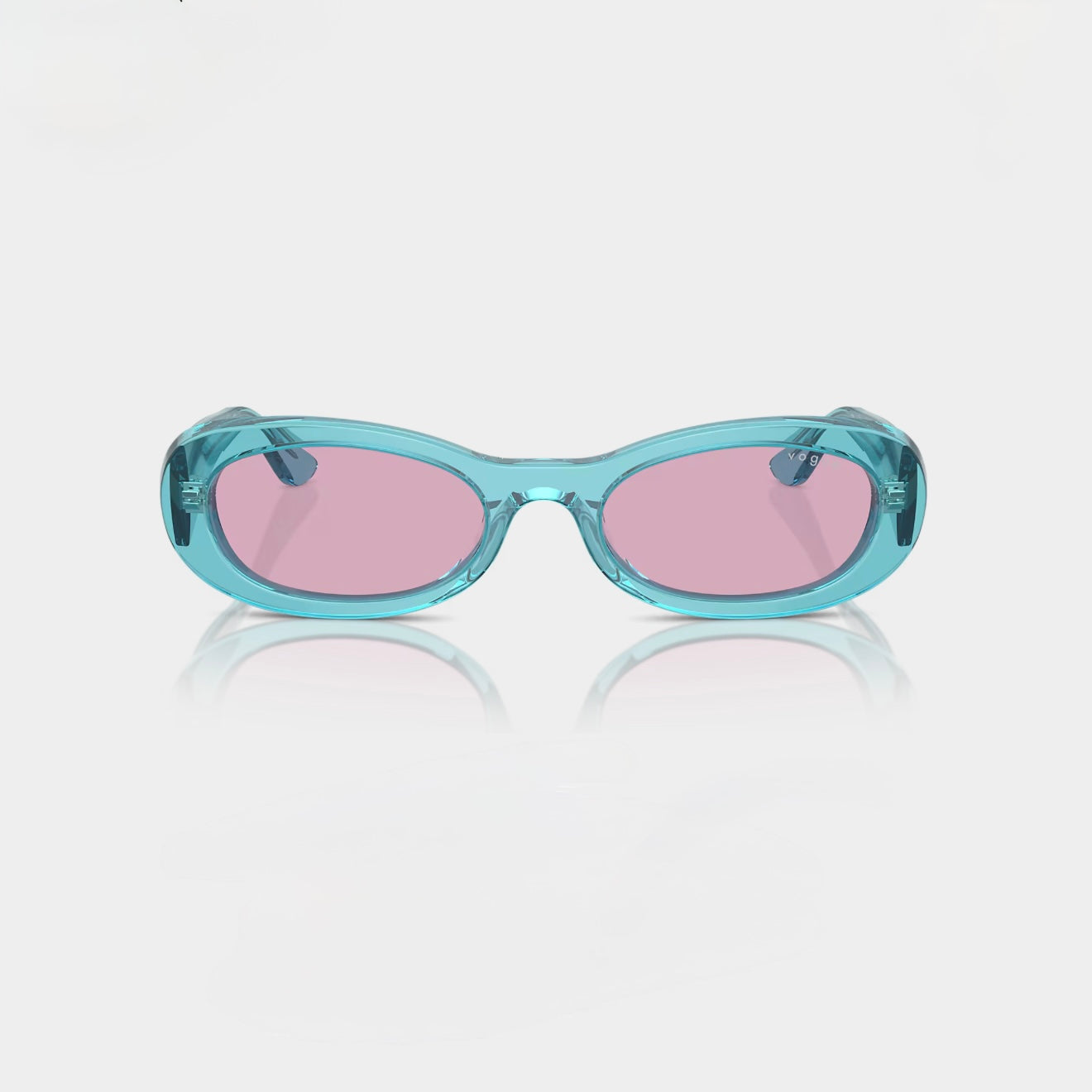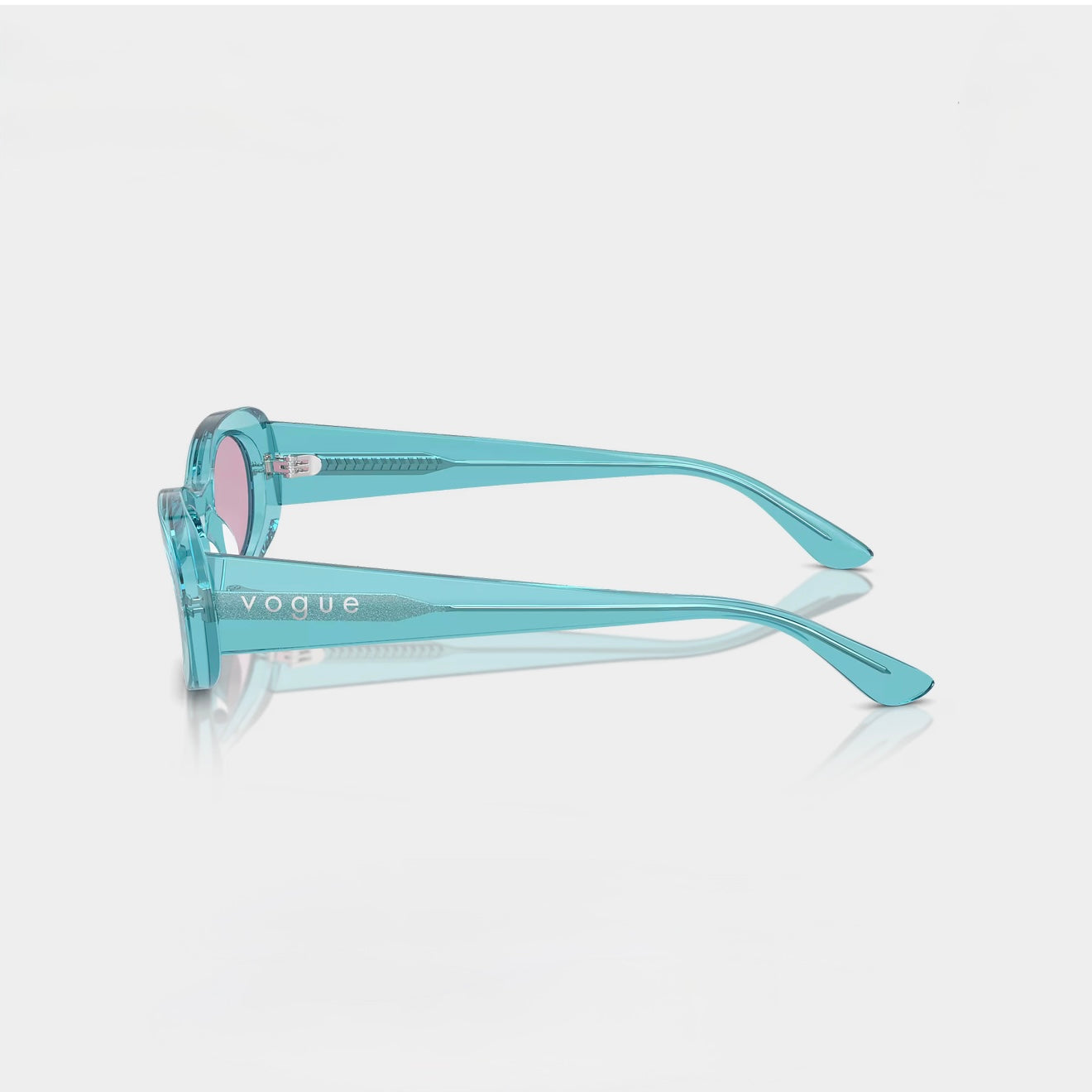 Diseño con forma ovalada y una montura en turquesa transparente que aporta frescura y originalidad. Las lentes violeta realzan la personalidad con un toque moderno y llamativo. Una pieza hecha para destacar con estilo y ligereza.