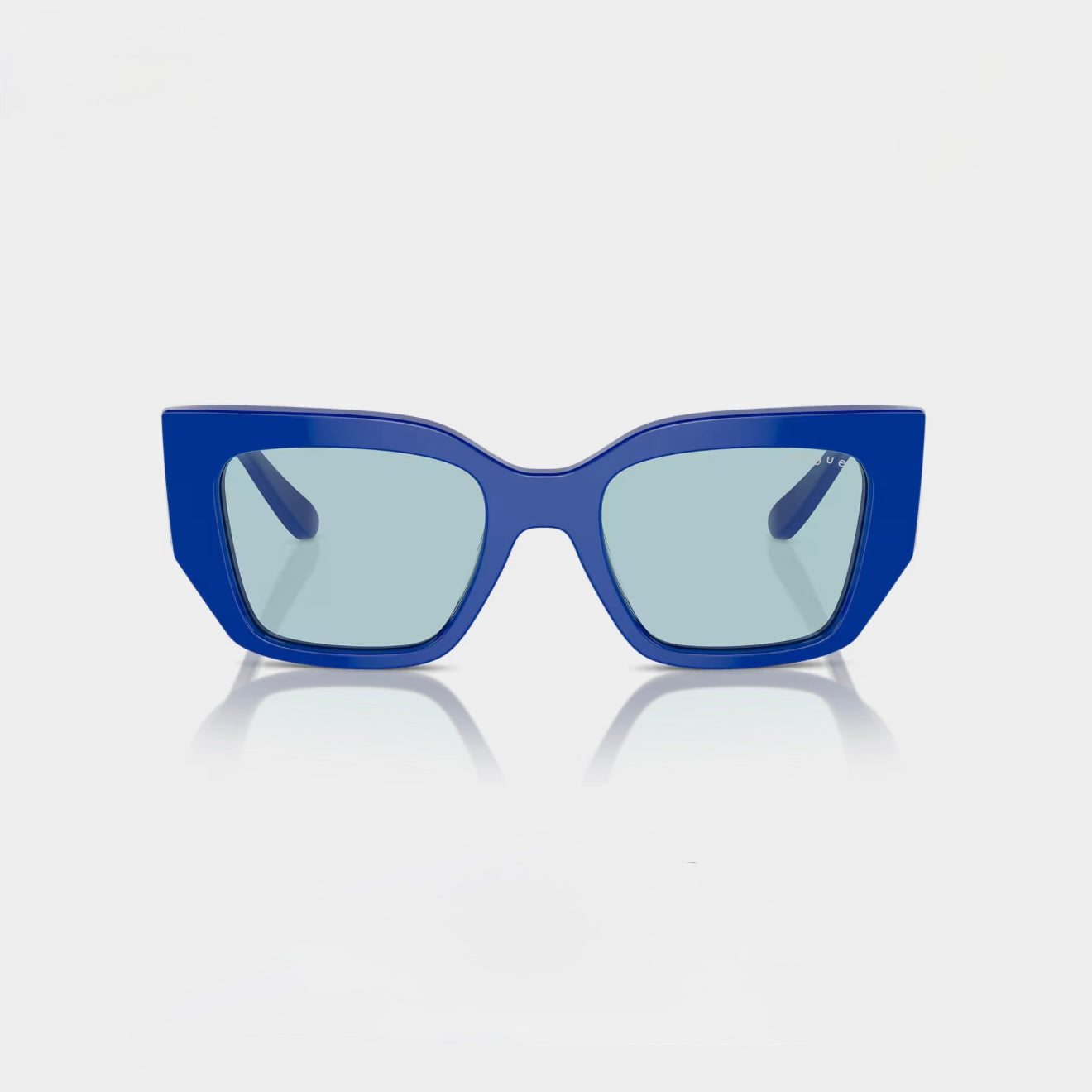 Este modelo VO5583S con forma Irregolare redefine el estilo con su frontal Full Blue y lentes Light Azure. Una montura llamativa y sofisticada ideal para quienes buscan destacar con elegancia.